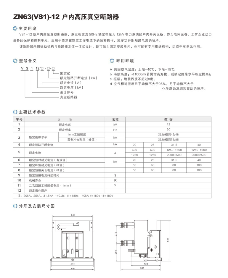 ZN63(VS1)-12固定式真空断路器