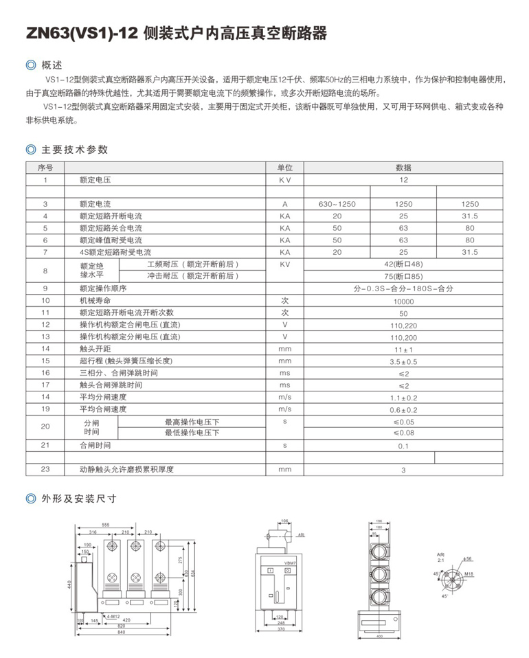 ZN63(VS1)-12侧装式真空断路器