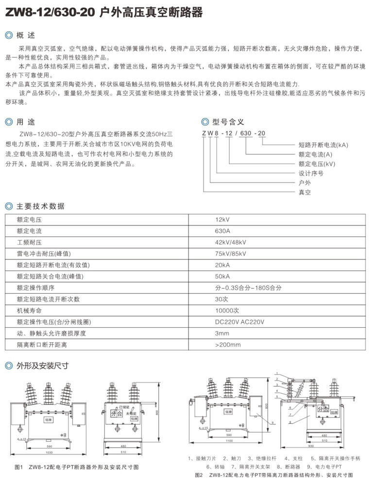 ZW8-12户外柱上真空断路器