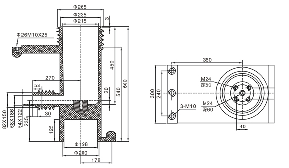 40.5KV 触头盒CH3-35Q/660三通A型(KYN61)可带屏蔽